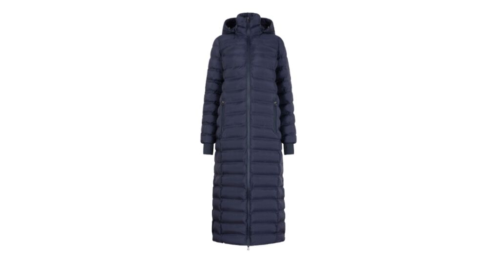 Pufferjassen zijn helemaal hot! Deze lange, donkerblauwe jas doe je never nooit meer uit. Het ceintuur met stretch en split maakt fietsen een makkie, zelfs met kinderen. Ideaal voor elke multitaskende moeder.