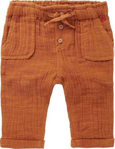 Linnen is niet alleen voor volwassenen in de zomer een lekker luchtig stofje. Dit roestbruine exemplaar is gemaakt van dun katoen en daarom perfect voor warme dagen.