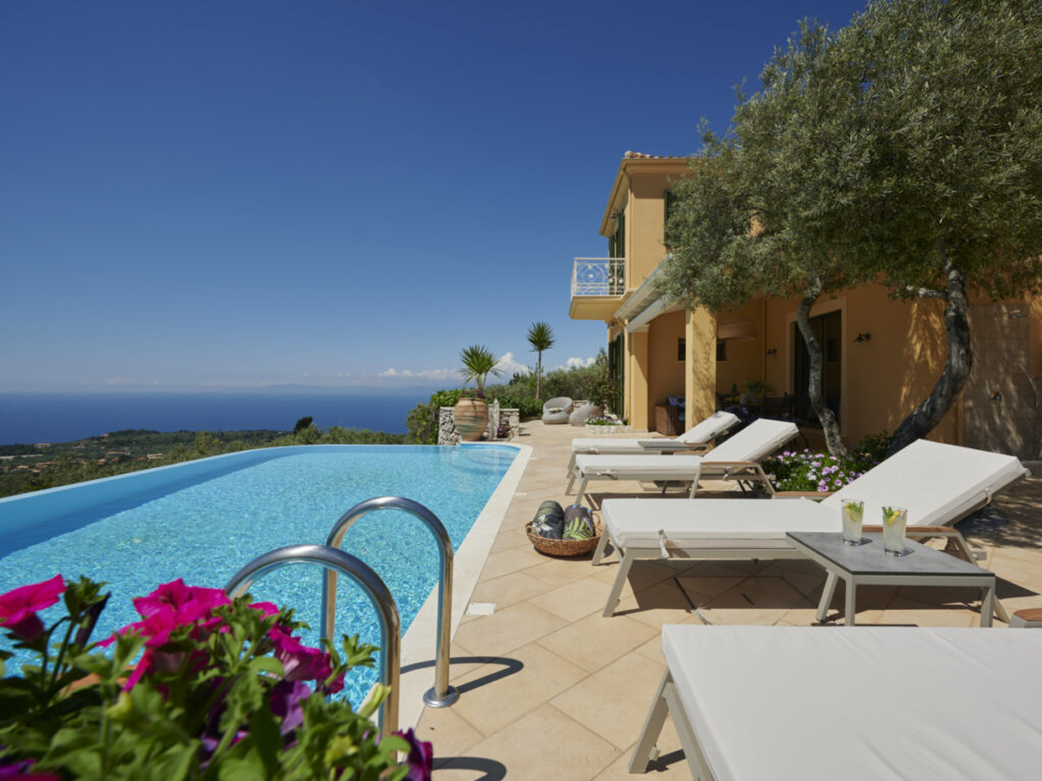 Lust voor het oog: Wauw, wat een droomplek voor gezinnen. De kindvriendelijke villa Tramonto Di Roccia op Zakynthos heeft een prachtige inrichting en een privézwembad waar je heerlijk kunt vertoeven.