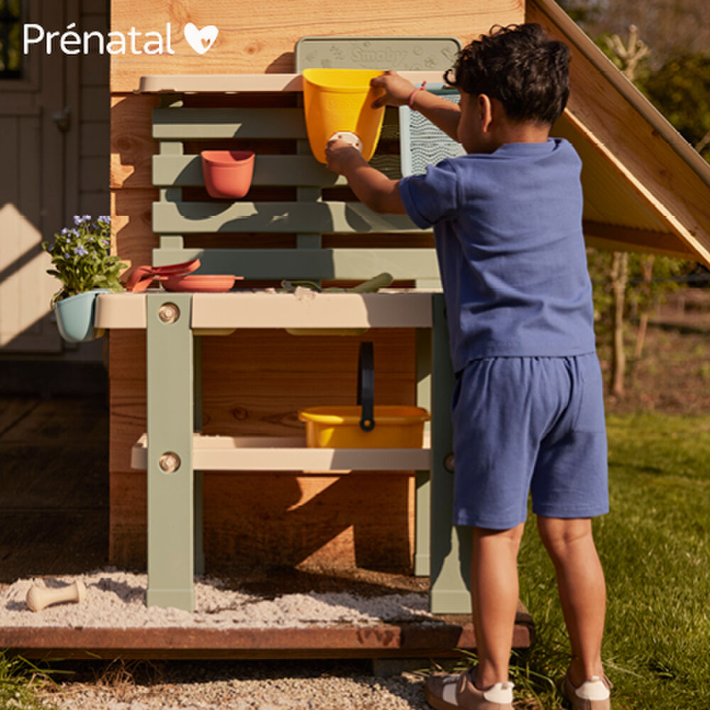 …dan begint het leuke gedeelte pas echt. Want buiten zijn is voor je baby één grote ontdekkingstocht en met een paar simpele (en een beetje vieze) extra’s maak je dat nóg leuker. Maak kennis met het buitenspeelgoed van Prénatal.