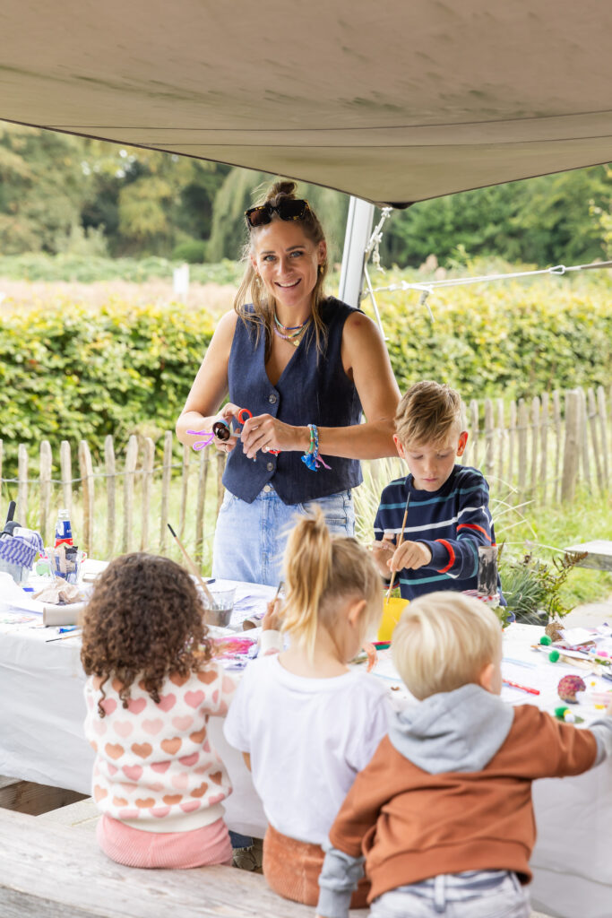 Terwijl de moeders aan de slag waren met hun eigen stijl te bepalen, knutselde de kinderen erop los met Rebecca Boektje. Alle kids verzamelden zich bij de tafels en kregen de keuze uit verschillende knutselwerkjes. Zo kon je een monster maken van een wc-rol, een potje vullen met blaadjes (als waxinelichthouder), een leeuw maken van blaadjes, een dennenappel versieren als slak of gewoon lekker je eigen gang gaan. “Eindelijk mocht mijn zoon helemaal los met glitters, daar heb ik thuis een hekel aan”, aldus een blije winnares.