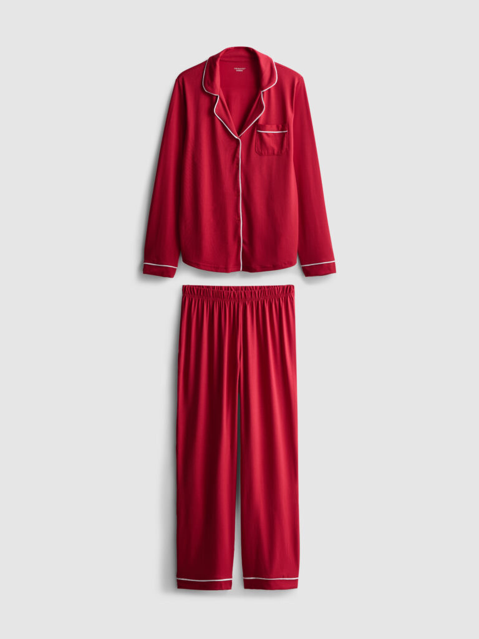 Deze pyjama met lange mouwen en broek houdt je heerlijk warm tijdens de koude winterdagen. Zacht, comfortabel en perfect om in te ontspannen of knus de feestdagen in te gaan.