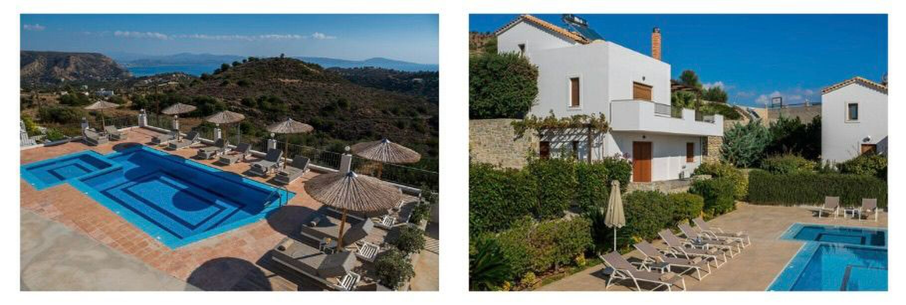 Art Blue Villas Deze plek ademt rust. Het uitzicht vanuit Art Blue Villas is fenomenaal. Je kijkt uit over de zee en het parelwitte strand. In no time ben je in kustplaatsje Tsoukalades, waar je kan genieten van het strand. Een boottocht, een trektocht te paard? Het kan allemaal. Al hoef je helemaal nergens heen: deze villa’s hebben allemaal een privézwembad en een heerlijk terras.