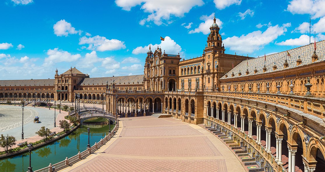 Bekijk een ansichtkaart van Sevilla en je ziet hét plein van de stad: het Plaza de España. Dit schitterende plein wordt door z’n vorm ook wel het Plein van de Halve Maan genoemd. Je vindt er bruggen, fonteinen, en de mooiste blauw-gele keramische tegels.