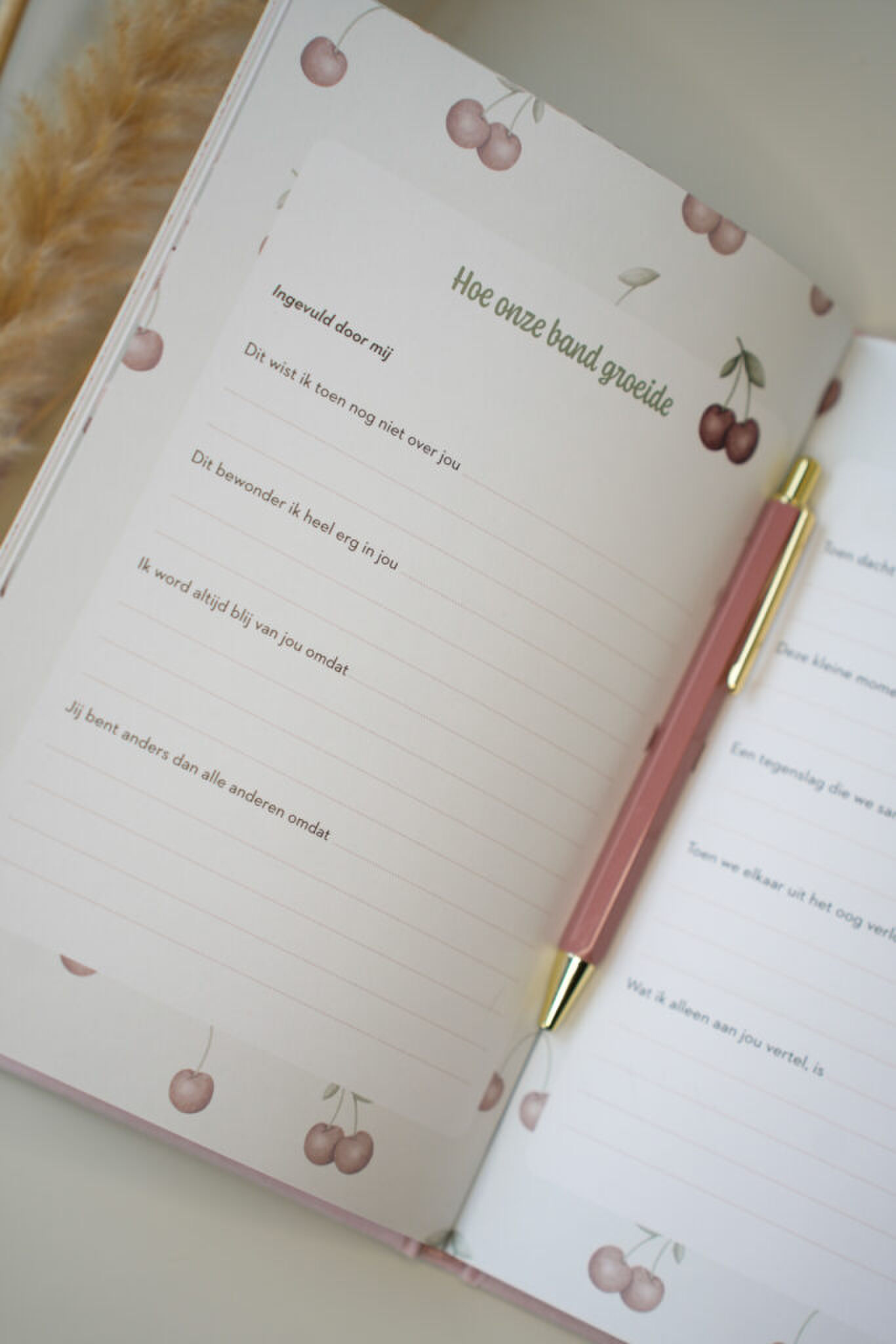 De pagina’s vul je samen in. En juist dat samenzijn maakt het zo waardevol. Niet alleen het eindresultaat telt, maar ook het moment waarop je samen aan tafel zit, terugdenkt, lacht, misschien even stil bent en woorden geeft aan wat normaal onuitgesproken blijft.