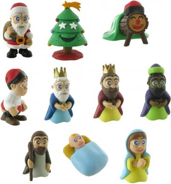 Heb je al een kerststal staan? Dan hoef je alleen dit setje van Jezus, Maria, Jozef en de drie wijzen te kopen en je kind kan het hele Bijbelverhaal naspelen.