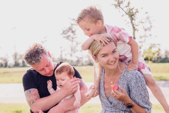 “Dat was een heftige tijd. Het was flink aanpoten met een huilbaby en bovendien sliepen we amper. Vanaf zijn geboorte huilde Senn twintig uur per dag – en dat geluid ging echt door merg en been. De kraamhulp trof ons elke ochtend huilend op de bank aan. Senn is ons eerste kind, dus ik was enorm onzeker: wat doe ik verkeerd? Bovendien nam niemand ons serieus. We kregen continu te horen dat huilen er nu eenmaal bij hoort. Hadden we het ouderschap gewoon te rooskleurig ingeschat? Pas toen mijn moeder bepaalde trekjes van mij in Senn herkende, kwamen we in de medische molen terecht. Wat bleek? Senn had reflux in combinatie met een koemelkallergie, net als ik vroeger. Door een strak regime aan te houden en koemelkvrije dieetvoeding, kregen we ons leven na ongeveer zes maanden weer op de rit. Daarna kwam de grootste klap: ik kreeg een burn-out en Peter en ik stonden op het punt om uit elkaar te gaan. Gelukkig hebben we elkaar, door heel veel gesprekken en aandacht, weer teruggevonden.”