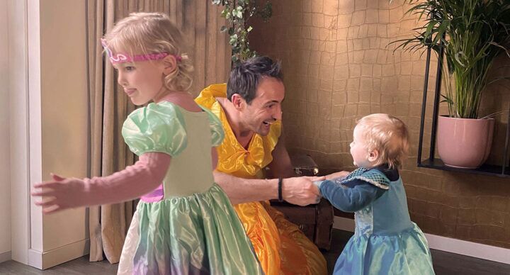 “Iedereen zei al dat ik een meisjespapa ben. Klopt, ik hou bijvoorbeeld ook van shoppen en dagjes naar een spa. Op de muziek van Juf Roos en Frozen dans ik ’s morgens met de meiden, allemaal in een mooie jurk. Ja, ik ook, dat maakt me niets uit. Zelfs onze poes is een meisje.”